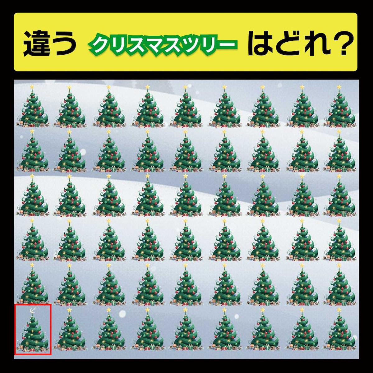 毎日配信中「毎日脳トレ」の時間です! 本日のクイズは「まちがい探し」に挑戦♪ いつもは漢字の間違い探しですが、今日は12月24日なのでクリスマスツリーの間違い探しです。同じイラストが並んでいるように見えますが、実は1つだけ違うものが……。よ~く探してみてください!