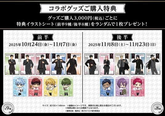 グッズご購入3,000円(税込)ごとに特典イラストシートをランダムで1枚プレゼント!