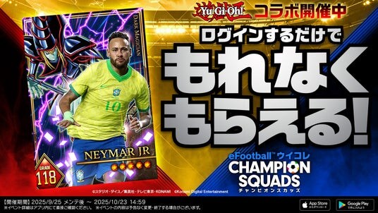 期間中にログインするだけで、「ブラック・マジシャン」とコラボした特別デザインのネイマール選手をプレゼントします。