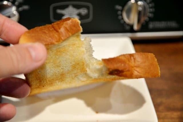 食べてみると、焼き加減も見事ですね。お手本のようなカリカリもちもちで、中身は適度にしっとりしてふんわり。高火力でスピーディーに焼ける性能により、内部の水分をある程度維持しながらカリッと焼けるメカニズム、これが『グラファイトヒータ』の実力ということでしょう。