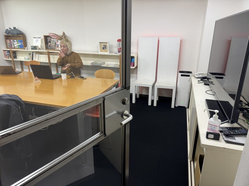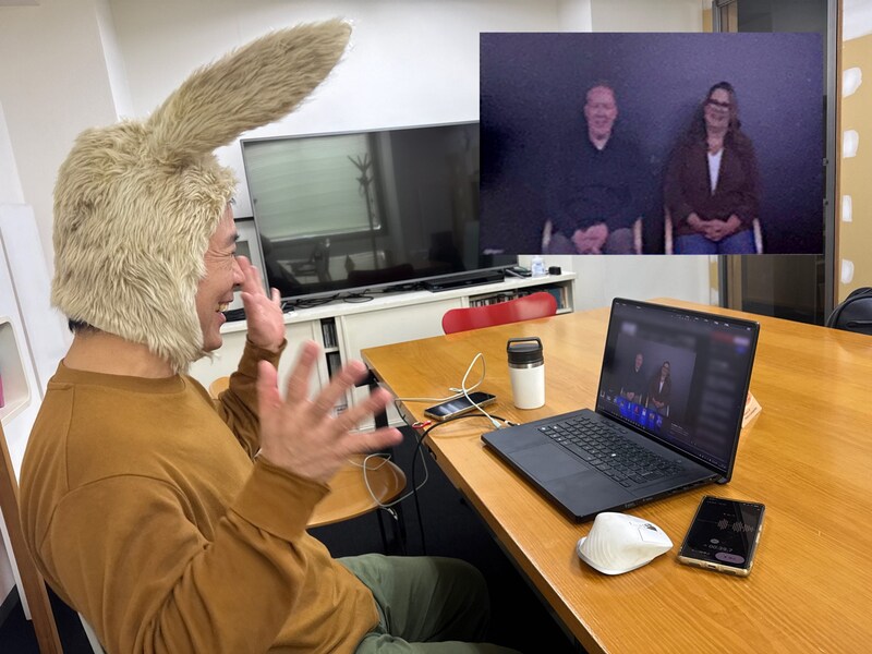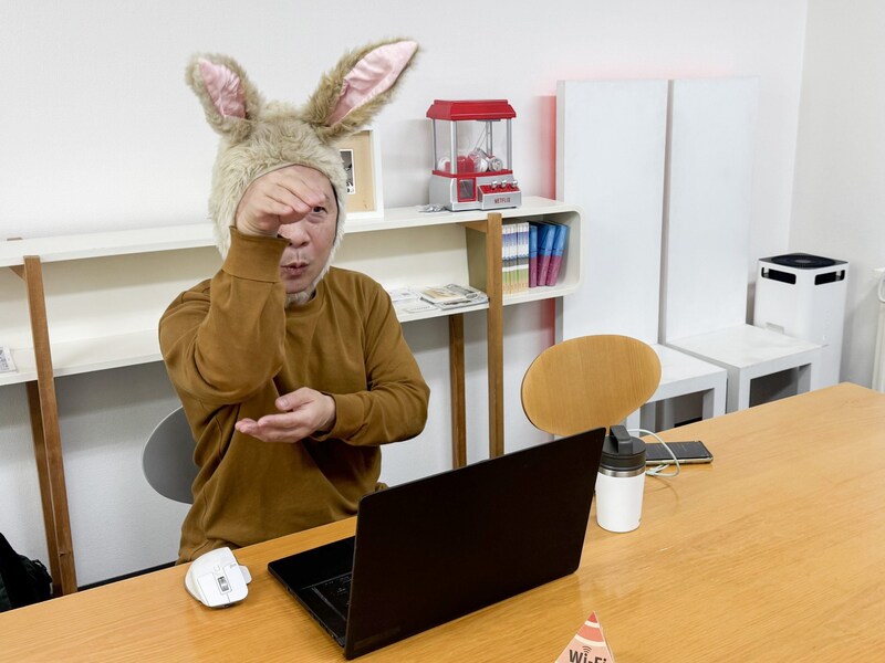 (※ウサギ姿のウサダ記者と制作陣が対面。ちなみに今回はオンラインインタビューです)