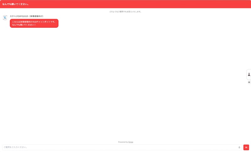 AIチャットボット・Kotaeが「ステハジEXPO2025」に出展