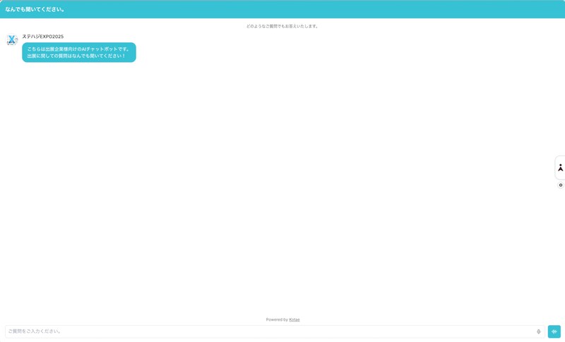 ステハジEXPO2025の公式AIチャットボットとしても採用され、来場者・出展者の問い合わせ対応をサポートした。