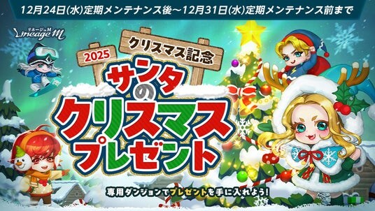 PCオンラインRPG「リネージュ」のモバイル版タイトル『Lineage M(以下、リネージュM)』のサービス、運営をしているエヌ・シー・ジャパン株式会社(本社:東京都港区、代表取締役:林 元基(イム ウォンキ)、以下エヌシージャパン)は、2025年12月24日(水)より、イベント「魔王の祝福」、クリスマスイベント2種、およびワールドダンジョン入場支援イベントの開始をお知らせします。