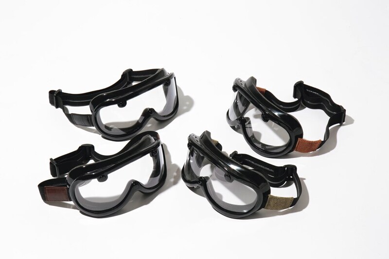 いまや希少な“純メイド・イン・ジャパン”のゴーグル。フレーム上部に曇りを防ぐ通気孔を備え、メガネをかけたまま使用可能。ストラップ部分のレザーがワンポイントだ。7150円