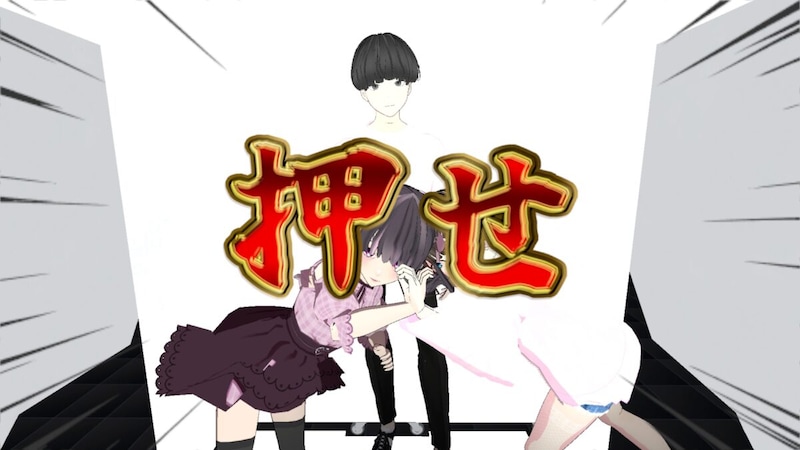 (デート代を稼いでいたら、後ろで2人がイチャつき出した図)こうして苦労して集めたお金で一行はプリントシールを撮るのですが、突然「押せ」という力強い文字と共に、ここあちゃんを外に押し出すミニゲームが発生します。上手く力加減を調整して、カメラの画角から完全にフレームアウトさせましょう。