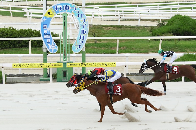 9月25日、園田競馬場で行われた11R・兵庫ジュベナイルカップ(2歳・ダ1400m)は、大山龍太郎騎乗の5番人気、エイシンイワハシル(牡2・兵庫・坂本和也)が勝利した。ハナ差の2着に1番人気のリーガルタイム(牡2・兵庫・柏原誠路)、3着にアングレ(牡2・兵庫・盛本信春)が入った。勝ちタイムは1:30.2(良)。