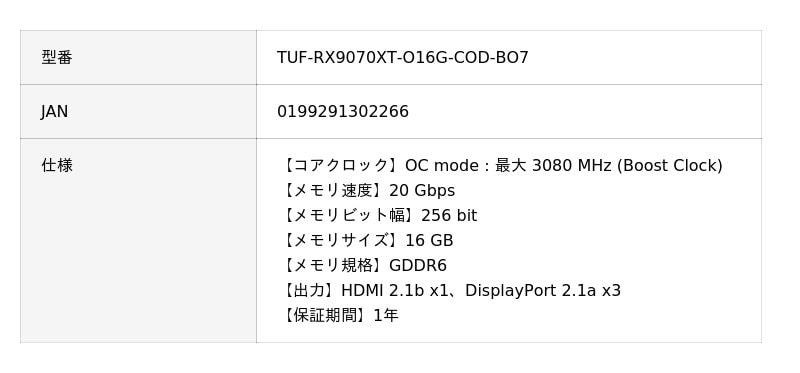 TUF-RX9070XT-O16G-COD-BO7 | ASUS(エイスース) Radeon RX 9070 XT トリプルファン搭載 オーバークロックグラフィックボード COD BO7 スペシャルエディション