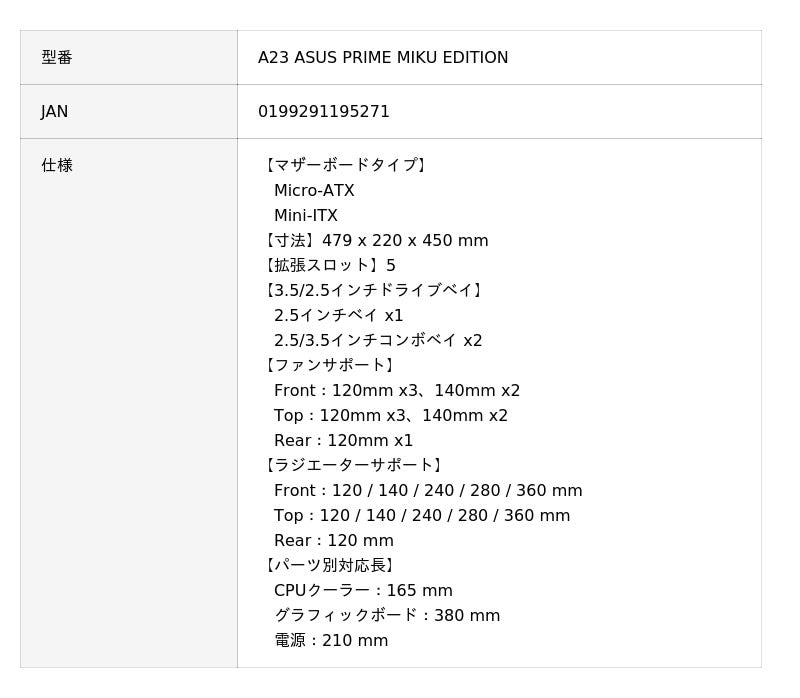 A23 ASUS PRIME MIKU EDITION | ASUS (エイスース) MicroATXマザーボード対応 PCケース 初音ミクエディション