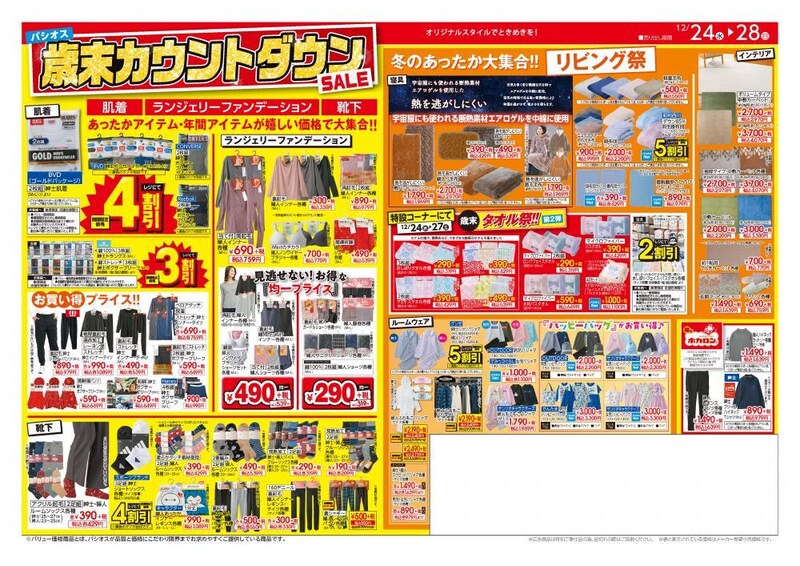 ファッションプラザ「パシオス」は2025年12月24日から28日まで、「歳末カウントダウンSALE」を開催しています。