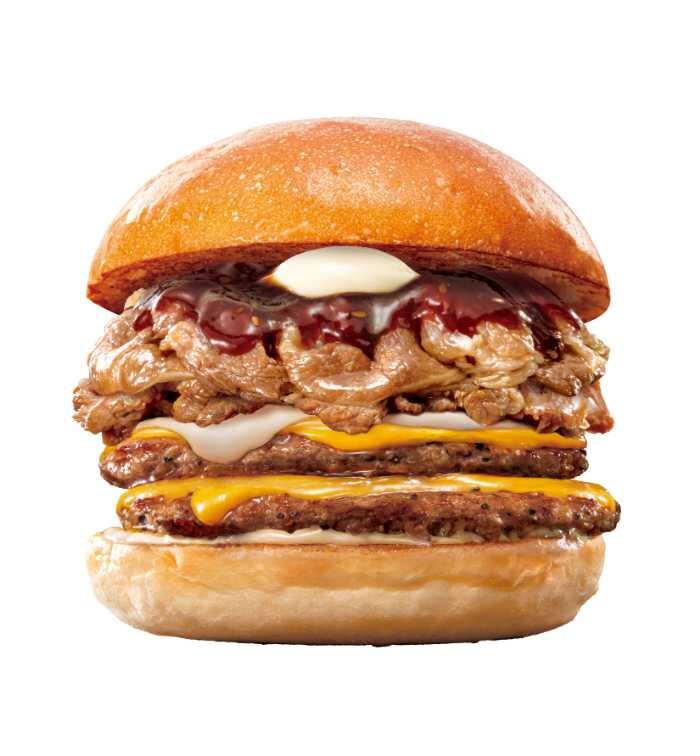 「ダブル絶品チーズ牛カルビバーガー」の大満足な味わいをさらにボリュームアップした「トリプル絶品チーズ牛カルビバーガー」。