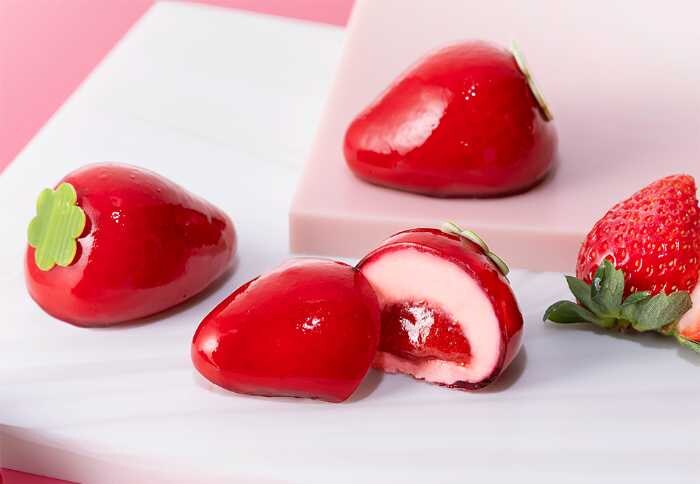 この『ストロベリーシーズン』のもうひとつの特徴は、その驚きの食感。ホワイトチョコレートベースの生ショコラは、なめらかで口に入れた瞬間とろけるような食感。