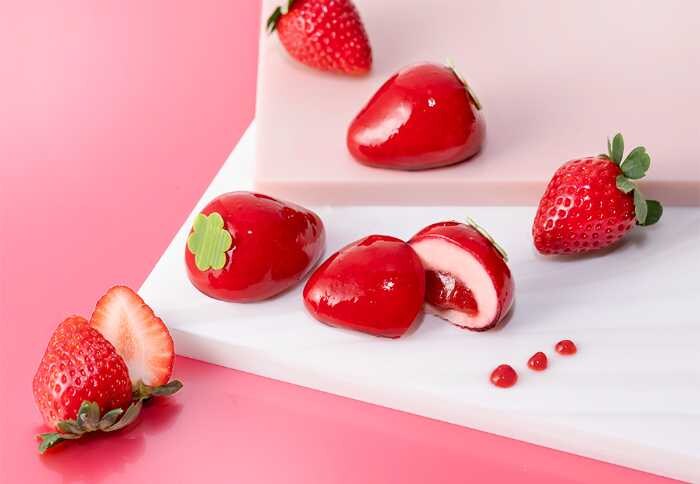 ホワイトチョコレートベースの生ショコラに、甘酸っぱいあまおう苺ソースを加え、まるで苺そのもののような味わいを楽しめます。