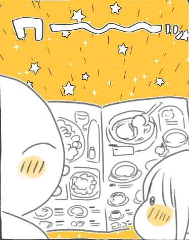 ワンオペにイヤイヤ期が重なり、メンタルが削られているなかでのサイゼリヤの明るさや温かさ、おいしいご飯に救われました。飲食業界の皆様ありがとう……!! という感謝の気持ちをお伝えしたくて描きました。