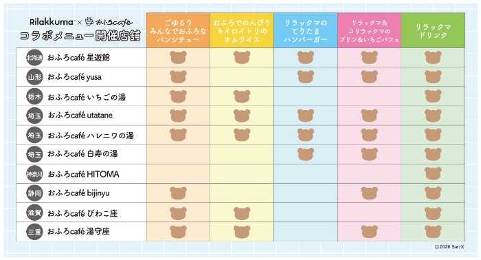 忙しい毎日に、ふっと力を抜ける癒しの時間を。サンエックスと温浴ブランド「おふろcafé」による人気コラボイベント「リラックマ×おふろcaféおふろあがりのごゆるりタイム2026」が、2026年1月9日(金)〜4月5日(日)の期間、全国13店舗で開催されます。おふろや館内、カフェを舞台に、リラックマたちと一緒に楽しむ“ごゆるり体験”がパワーアップ♡日常を忘れて、心も体もゆるむひとときを過ごせます。