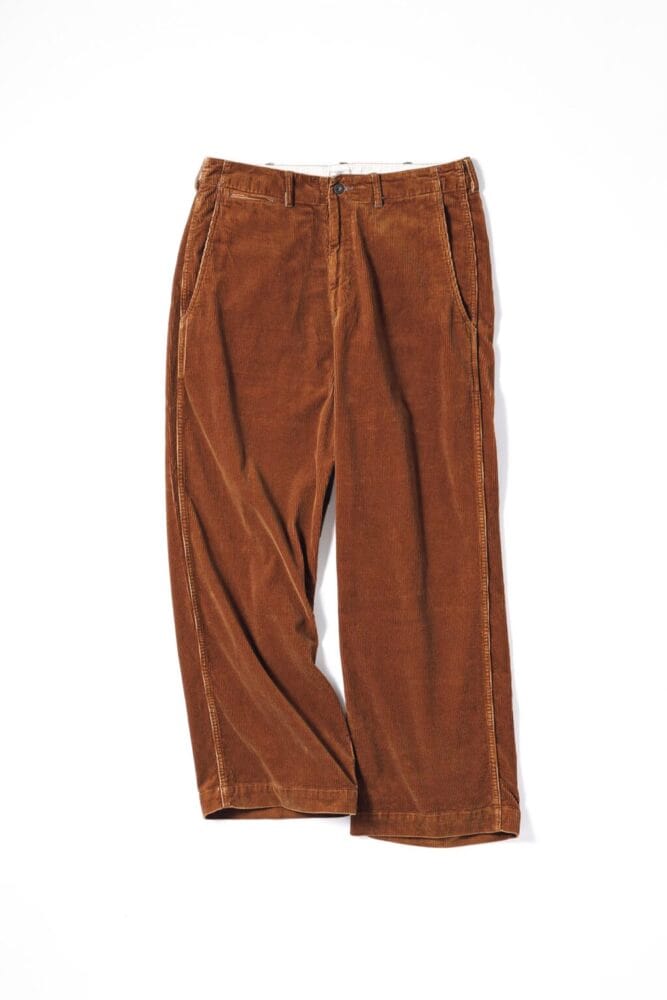 1942年型のミリタリーチノをベースに、ワイドシルエットに変更。2本針巻き縫いの縫製や両玉縁のバックポケットなどの本格仕様を踏襲しつつ、ジッパーフライにアレンジ。ストーンウォッシュ加工を施した風合いはヴィンテージさながらの表情だ。3万5200円(東洋エンタープライズTEL03-3632-2321)