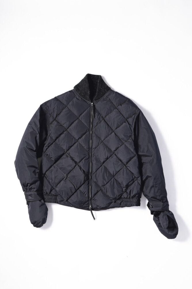 旧きよきアウトドアスタイルを彷彿とさせる新型のパフジャケット。シルクとポリエステルを高密度に織り上げた独特の光沢を放つマテリアルが最大のポイントだ。ブランドのシグネチャーディテールであるミトンが程よく主張する。12万1000円(オールドジョー フラッグシップストアTEL03-5738-7292)