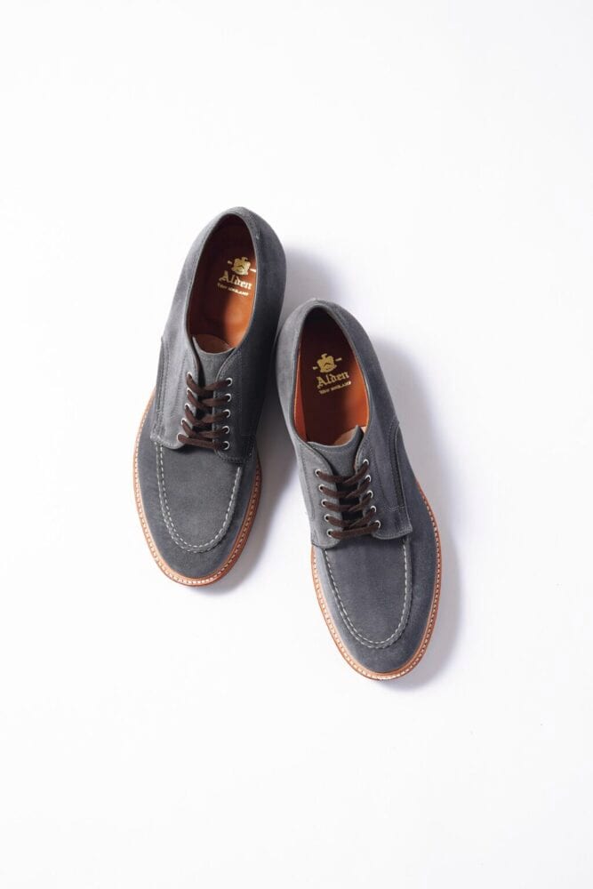 無類のオールデン好きである森島久氏が手がける〈ボンクラ〉から待望の別注作が登場。通称インディーブーツをベースに木型はモディファイドラスト、仕様をローカットに変更。アッパーにはブルーグレーのスウェードを採用し、唯一無二の表情に仕上げた。17万7100円(サロン ボンクラTEL072-968-7073)