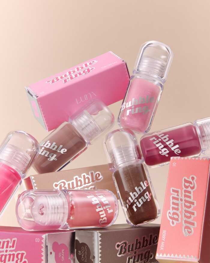 LUNAバブリングガムグロスは、風船のように立体感のあるツヤと、ガムのようなもっちり感を両立した新感覚のグロス。唇にのせるとピタッと密着し、ぷるんとした質感が長時間続きます。