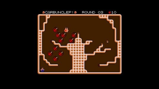 本作は1991年にコンパイルから発売された『ディスクステーション#24』に収録されていた、猫を主人公にしたアクションパズルゲーム『にゃんぴ』のカーバンクル版ともいえるゲームです。プレイヤーはカーバンクルを操作して、マップ上に配置された宝石をすべて獲得し、女の子の元へと向かうとゴール。次のステージへと進めます。