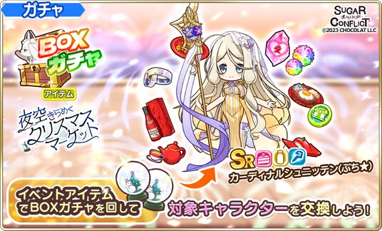 - 「BOXガチャ(Xmas)」で「カーディナルシュニッテン(ぷち★)」を手に入れよう!