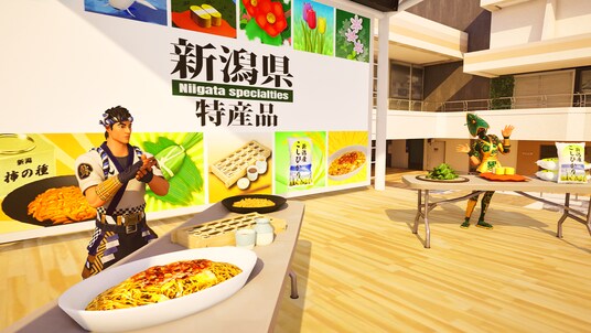 本作は、PLATEAUが提供する3D都市モデルをもとに、リアルとゲームが融合したビルドバトルゲームです。街並みをロビーエリアとして再現し、プレイヤーは信濃川河口のランドマークを拠点に世界中のユーザーと建築バトルを行います。ロビーエリアには「トキ」「錦鯉」をシンボルとして配置し、笹団子・へぎそば・柿の種・佐渡金山の金などの特産品をデジタル展示しています。地域文化を自然に学べる構造になっています。
