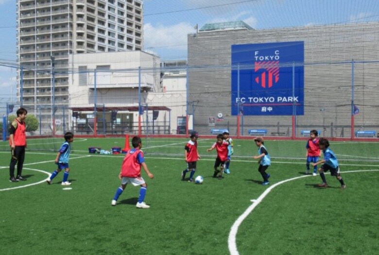 府中市で行われたFC東京のサッカー教室。都会のなか、整備された環境でサッカーを楽しめるもちろん、FC東京は公民連携制度「S-SAP(シブヤ・ソーシャル・アクション・パートナー)協定」を結んでいる渋谷区など都心でもサッカー教室を開催している。都心から離島まで、様々な環境の子どもたちとの関わりに取り組んでいるクラブだ。