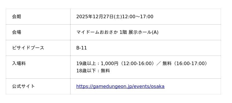 「大阪ゲームダンジョン」は、個人や小規模チームが制作するデジタル・ゲーム(インディゲーム)の展示会です。