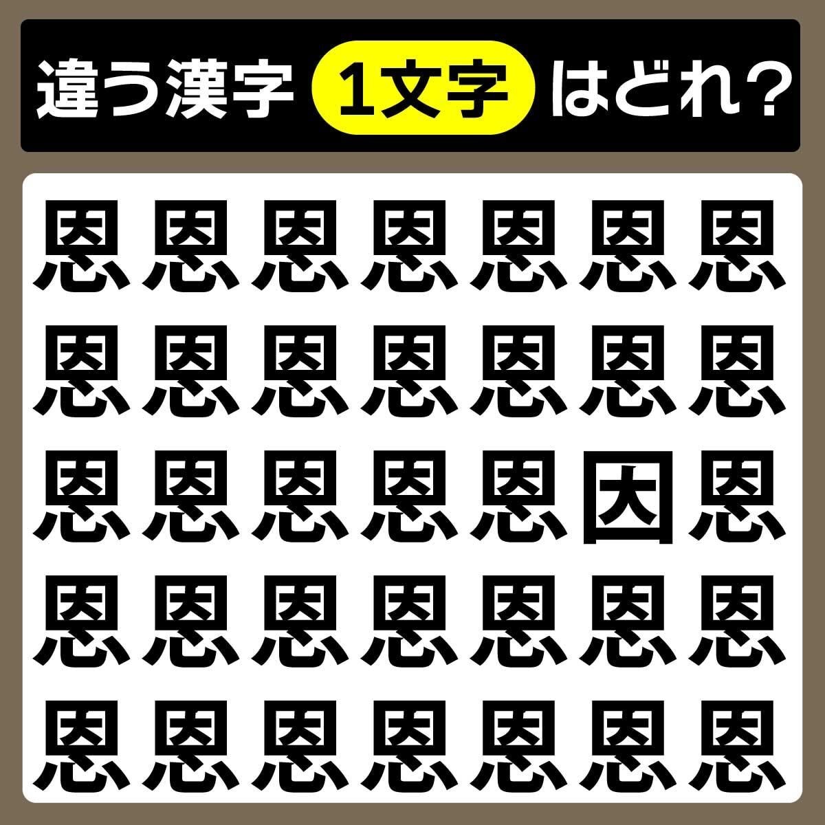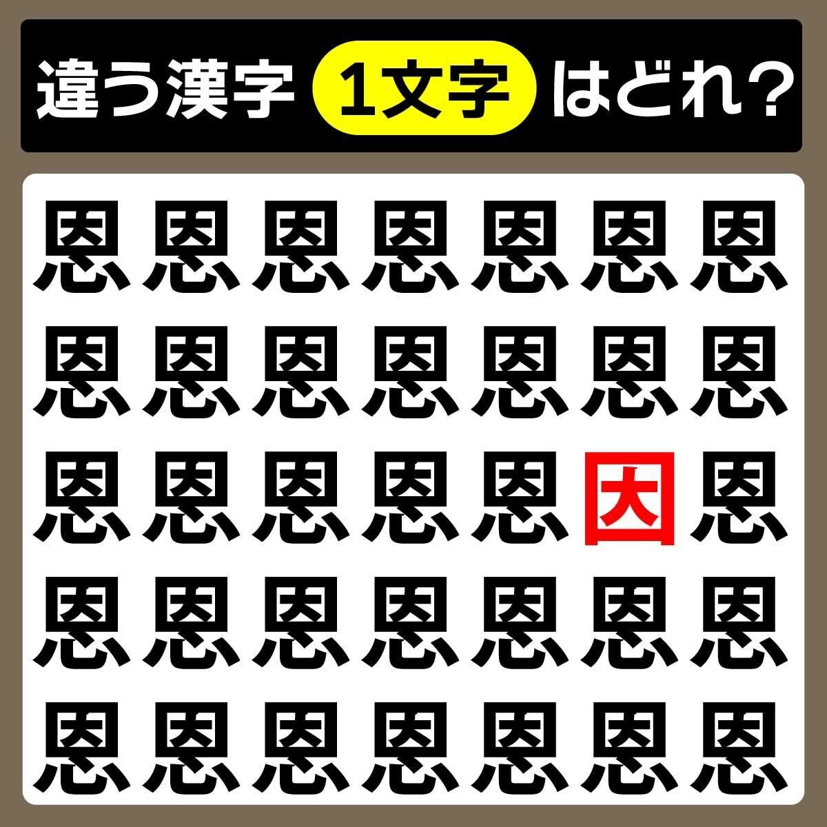 毎日配信中「毎日脳トレ」の時間です! 本日のクイズは「漢字のまちがい探し」に挑戦♪ 同じ漢字が並んでいるように見えますが、実は1つだけ違う漢字が……。よ~く探してみてください!