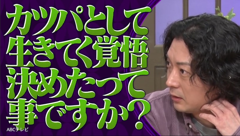 頭に黒い粉を振りハゲを隠していたことがバレた濱家は、「俺はもう悲しいよ。こんな笑いの取り方」と嘆き節。「いや、あなたが押してって言ったから」「何で押させたんだよ」という声が上がると、濱家は「俺いま狭間なんすよ。ハゲで笑い取りたい気持ちもあるし、情けない気持ちもあるし」と現在の心境を吐露。