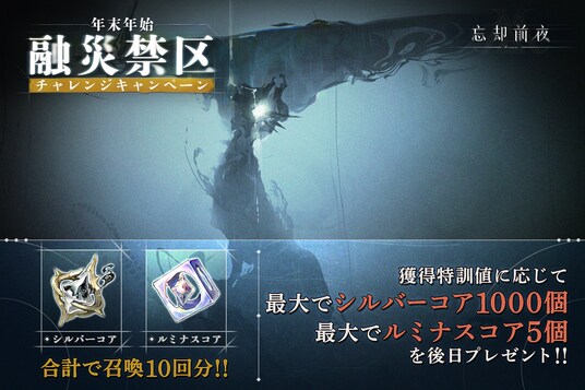 今期の「融災禁区」において、獲得した特訓値に応じて最大で「ルミナスコア5個」「シルバーコア1000個」を後日プレゼント!