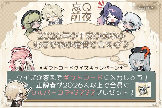 ギフトコード正解者が合計2026人以上で全員に「シルバーコア????個」をプレゼント!