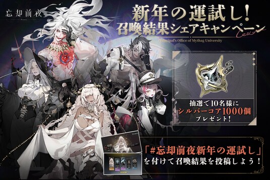 召喚結果のスクショ、ハッシュタグ「#忘却前夜新年の運試し」を付けて、新年の召喚結果をシェアしよう!