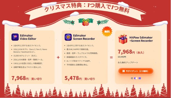 通常は別売りとなっている「Edimakor Screen Recorder 永久プラン」が無料で付属します。