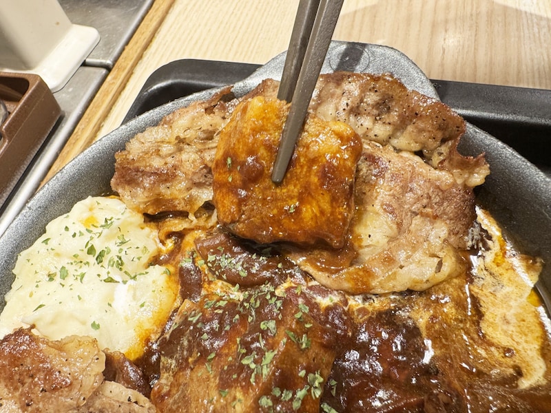ちなみに、牛焼肉でハンバーグを包んで食べても絶品だし、ビーフシチューをよくからめた牛焼肉でライスを包んで食べてもおいしい。つまり、松屋の牛焼肉は「包んで食べる」という点において、かなり優秀な料理といえるのだ。特にビーフシチューとの相性は抜群に良い。