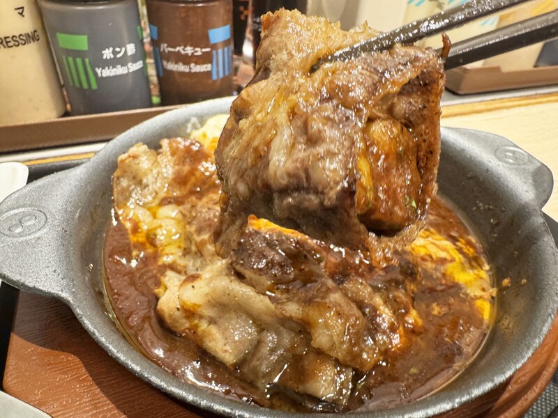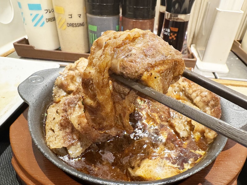 しかし、さらに魅惑的なおいしさ爆上がりの食べ方がある。ビーフシチューをよくからめた牛焼肉で、ビーフシチューに入っているトロトロ牛肉を包んで食べるのである。これがもう究極的なうまさ。牛焼肉のかめばかむほどあふれ出る旨味、トロトロ牛肉のとろけて広がる甘味と旨味、ここにライスを合わせれば、もはや神域のウマさとなる。