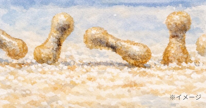 このタイプは砂粒を内部まで大量に取り込み、輪のような形になります。