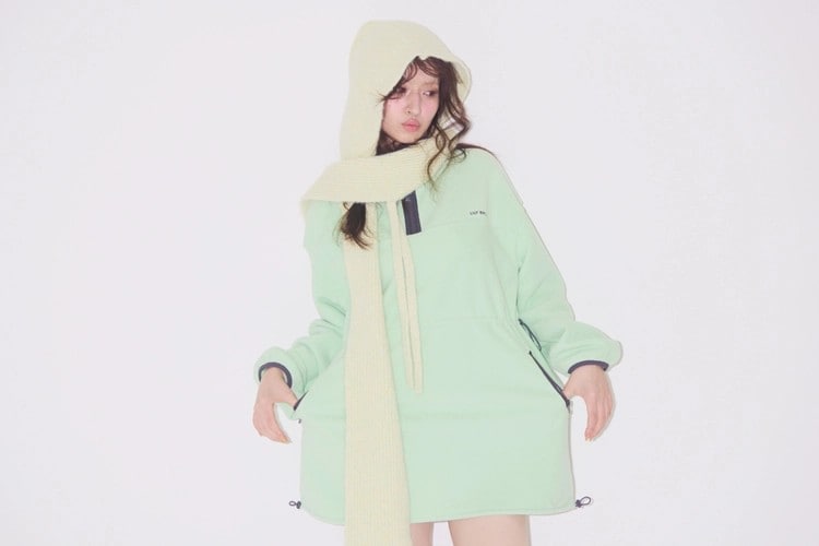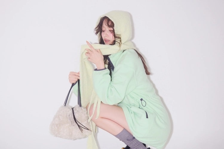 グリーンフリースミニワンピース 15,950円/LILY BROWN イエローバラクラバ 14,300円/アコック(ユー バイ スピック&スパン ルミネ池袋店)ボアバッグ 19,800円/Chapeau d'O 東急プラザ銀座店 ソックス 1,650円/靴下屋(Tabio)シューズ 19,800円/ル タロン グリーズ ルミネ新宿店(ル タロン グリーズ ルミネ新宿店)