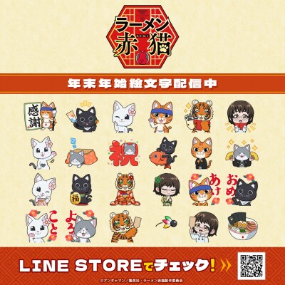 TVアニメ『ラーメン赤猫』のインクルーズが描き起こしたミニキャラver.の年末年始LINEスタンプとLINE絵文字が【インクルーズの販売アカウント】より2点同時に配信開始!是非、年末年始もTVアニメ『ラーメン赤猫』のキャラクターたちと一緒にトークを盛り上げましょう!