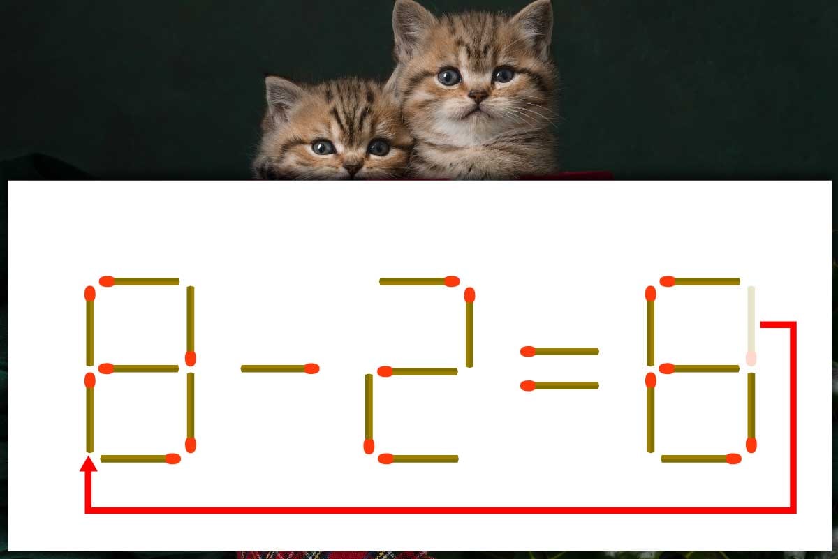 「8」のマッチ棒を1本、「9」に移動させて「8」を作り、「8-2=6」にする。※解答は複数ある場合があります。