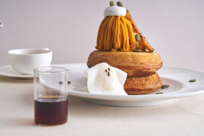 さらに見た目も可愛い“おばけ仕立て”のアイスが添えられていて、思わず写真を撮りたくなる一皿に♡価格は1,540円(税込)、10月限定の特別な味を楽しんで。