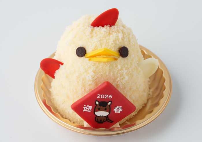 羽とトサカは紅白カラーで仕上げられ、胸元には翌年の干支「午(うま)」にちなんだ馬のイラスト入りチョコレートをトッピング。