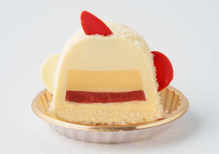 賀正ぴよりんは、新年を祝うためだけに作られた期間限定スイーツ。名古屋コーチン卵を使った濃厚なプリンに、甘酸っぱいイチゴジュレを重ね、やさしい甘さのホワイトチョコババロアで包み込んでいます。