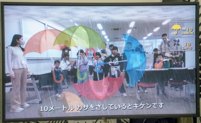 防災に関する体験では、地震や豪雨といった災害を疑似的に体感できる企画や、クイズやゲーム形式で防災について考える内容が用意されていました。