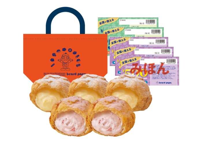 数量限定で登場する「ビアードパパの福袋2026」は、オリジナルトートバッグに特別割引券2,500円分とシュークリーム5個が入った充実内容。