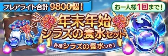 無償フレアライト4900個、各種シラズの養水がおまけでついてくる、お得なセットが登場しました!