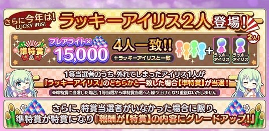 1等当選者のうち、外れてしまったアイリス1人が『ラッキーアイリス』のどちらかと一致した場合『準特賞』が当選!