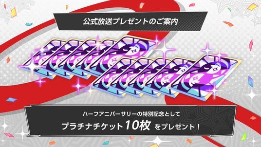 ハーフアニバーサリーの特別記念として「プラチナチケット」×10をプレゼント!
