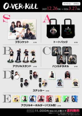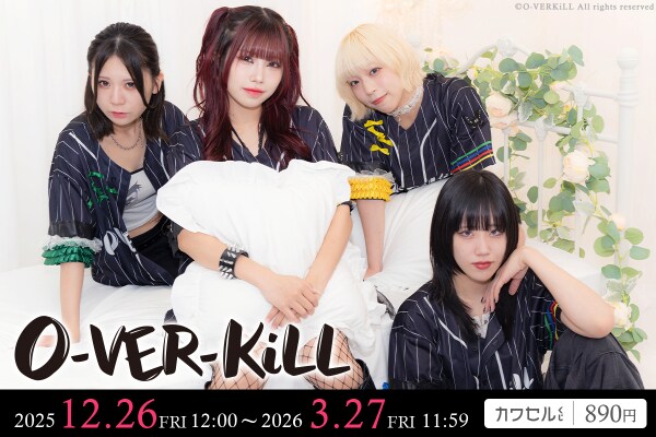 プロジェクトオーディション「Take Your Voice to the Dream 2024」より、約2,000名もの応募者の中から選ばれたSARiNA、MiYU、KiLUA、RAiSAの4名で構成されたロックアイドルグループ「O-VER-KiLL」の、「カワセルくじ」だけの撮りおろし写真を贅沢に使用したグッズが盛りだくさんのオンラインくじが新登場!