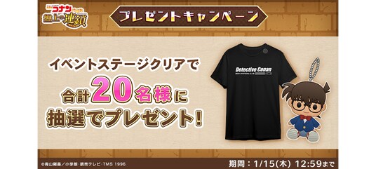 また、全ステージクリアで、「名探偵コナンパズルアクリルキーホルダー(江戸川コナンのぬいぐるみ)」や「BEIKA WATSONs CLUB非売品Tシャツ」が抽選で合計20名様に当たるプレゼントキャンペーンに応募できます。